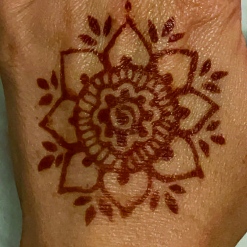 2-8 Stunden kann das getrocknete Henna auf der Haut bleiben. Je länger das Henna einwirken kann, umso dunkler wird das Farbergebnis.